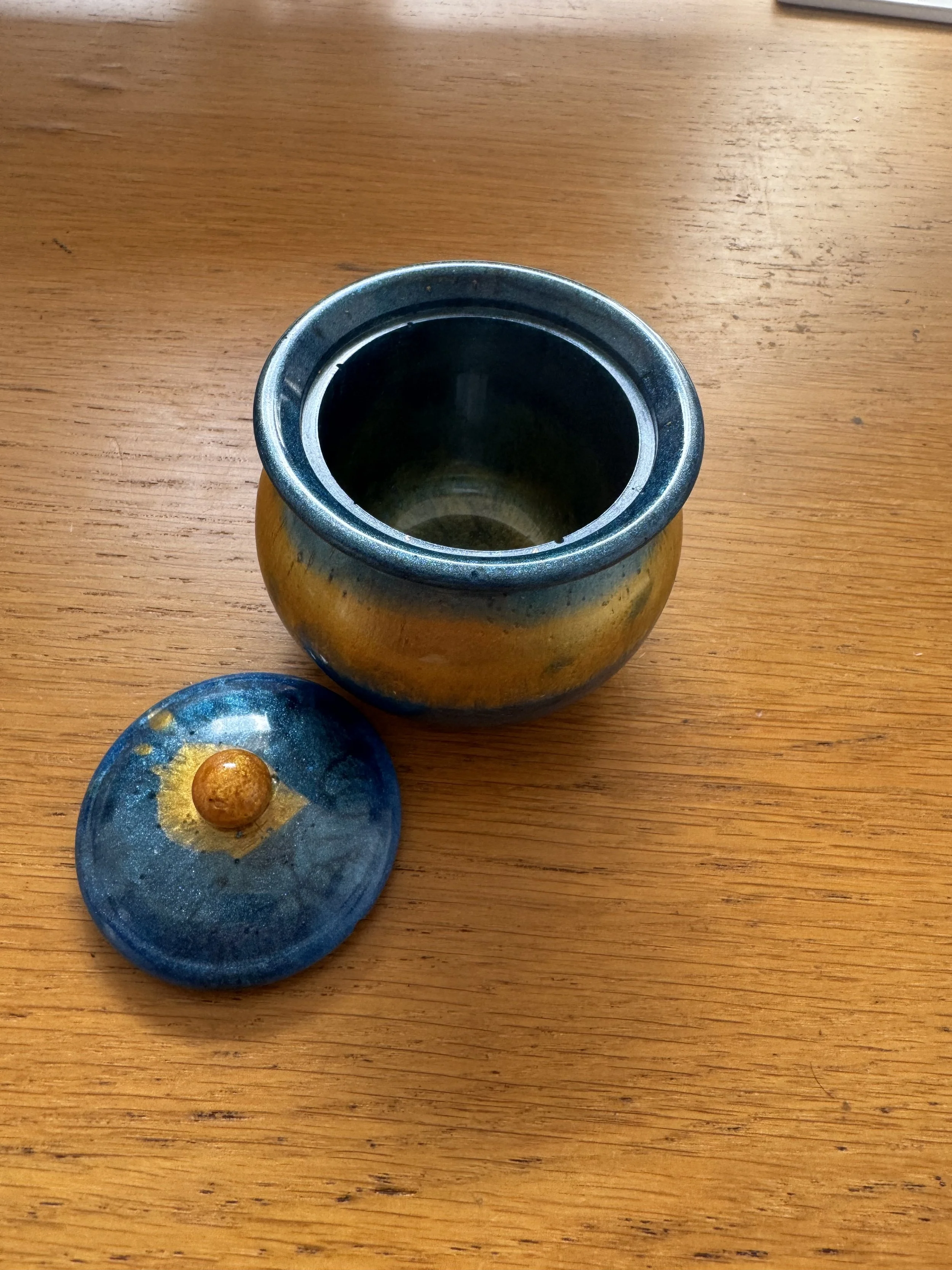 Organise your small treasures in style with this beautiful hand-poured resin trinket jar. With a smooth, rounded finish and matching lid, this little pot is perfect for storing jewellery, crystals, cotton pads, or those special keepsakes you want to keep close.